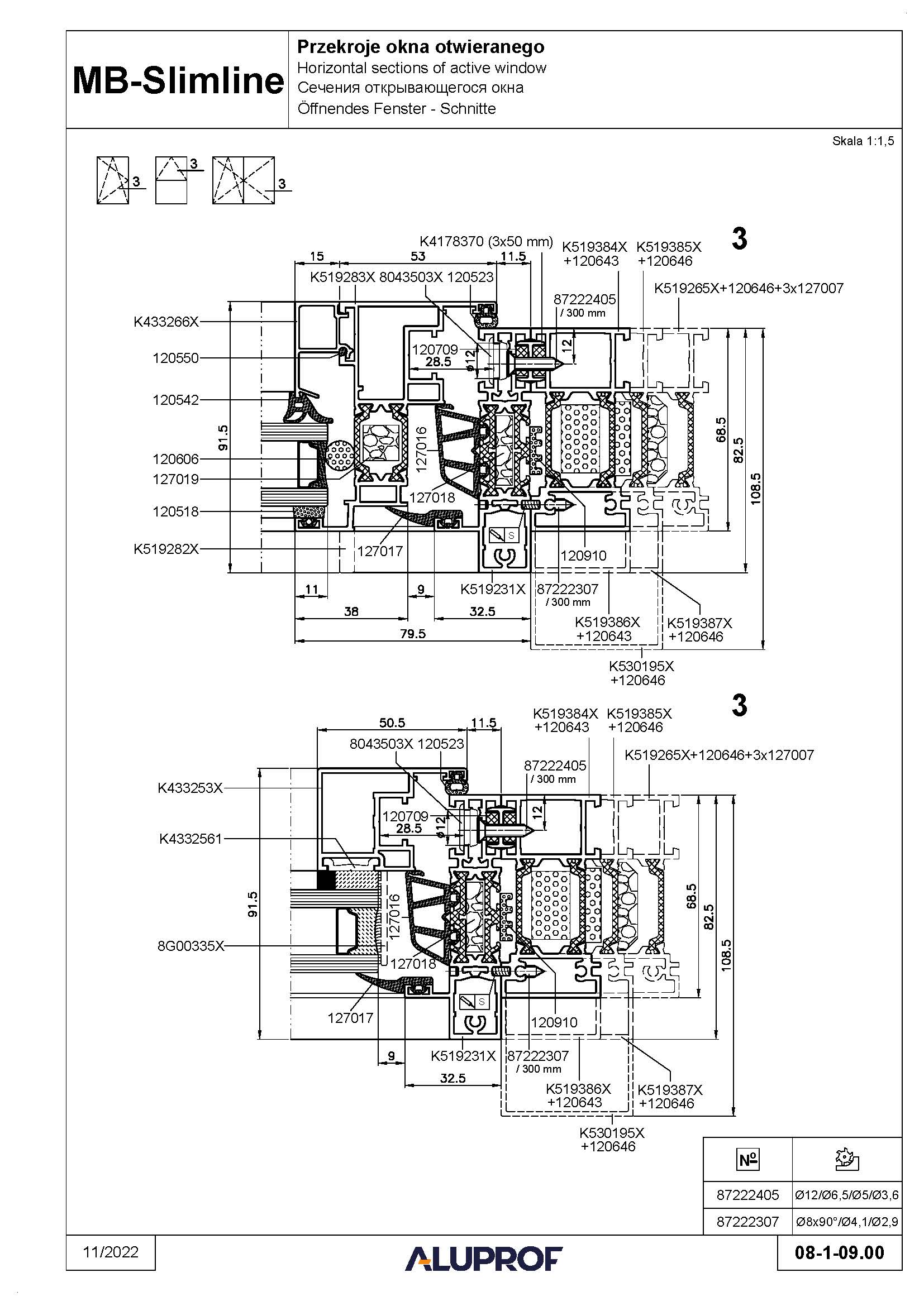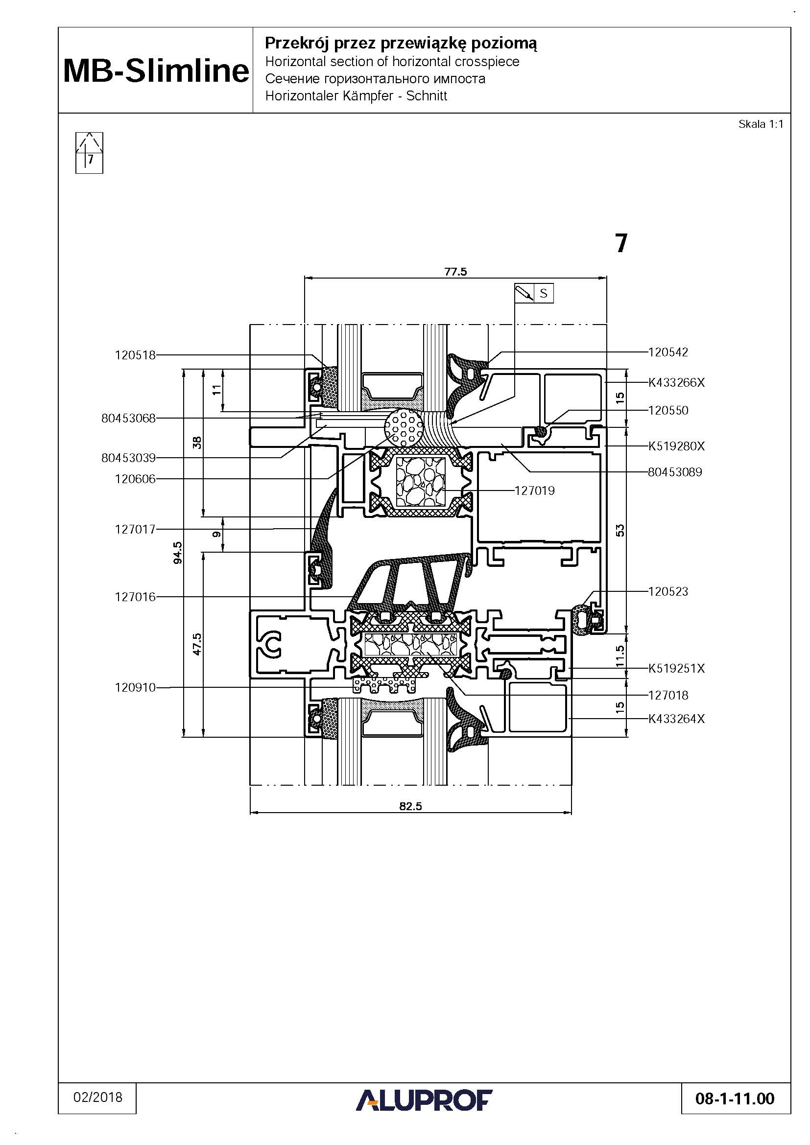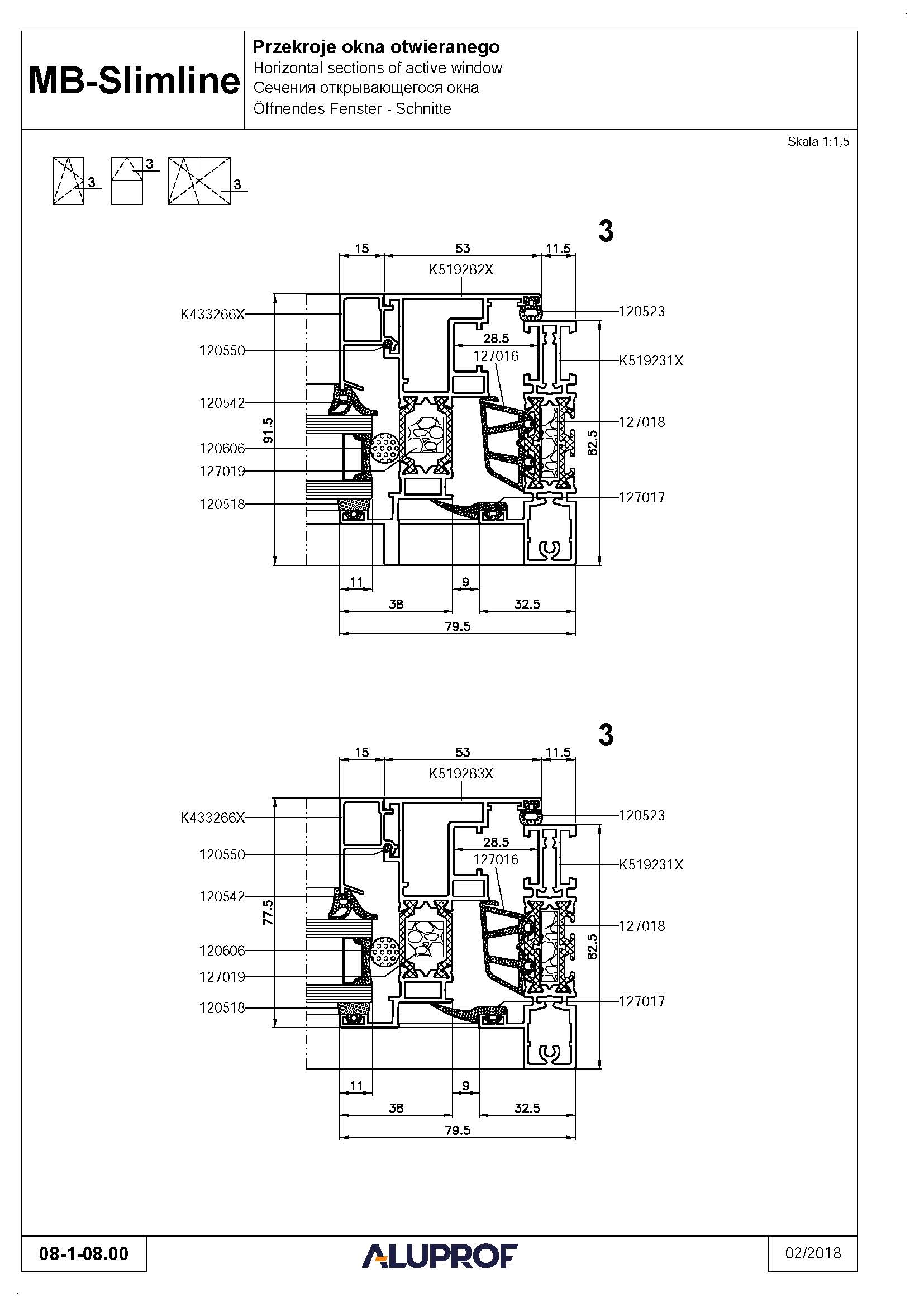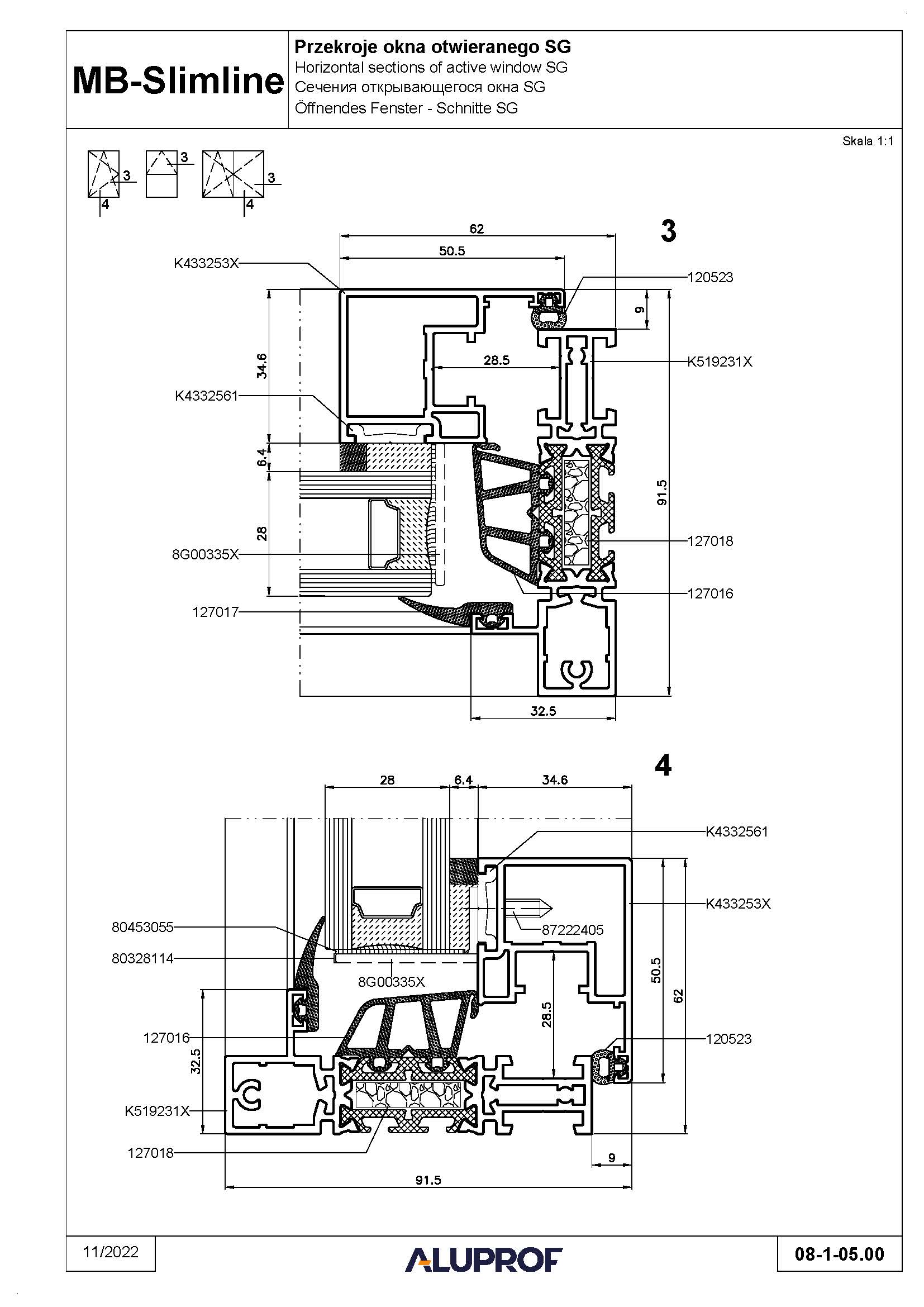 - Конструктивная ширина видимых алюминиевых профилей в неподвижных и активных окнах (опция SG) составляет 32,5 мм для рам и 47,5 мм для поперечных и перекладин. Ширина одинакова для всех профилей независимо от их прочности, толщины остекления и т. д. Ширина видимых профилей активных окон, предлагаемых в качестве опции с видимой створкой, составляет, соответственно: 79,5 и 94,5 мм. Конструктивная глубина оконных профилей варьируется и составляет от 68,5 мм до 123,5 мм (тип A) и от 90,5 мм до 145,5 мм (тип B) и зависит от используемых стеклопакетов (одно- или двухкамерных) и от требуемой прочности профилей. Также возможно использование других профилей, например, соответствующих специфическим требованиям здания.